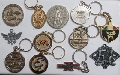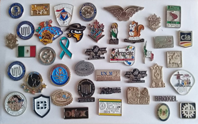 Pines, Medallas, Llaveros. El mínimo de venta es de 100 piezas (modificable). Reconocimientos, Placas Grabadas, Trofeos. El mínimo de venta a partir de 1 pieza.